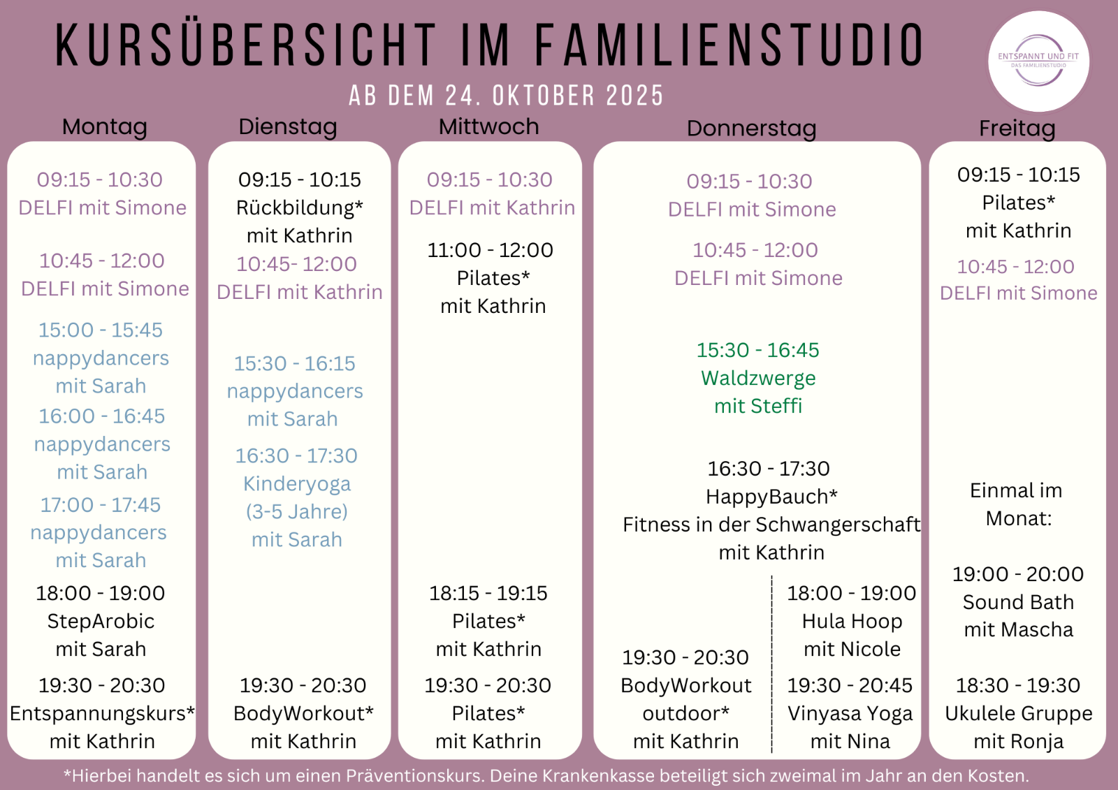 Hier kannst du dir einen Überblick über meine Kurse verschaffen. (Änderungen vorbehalten)